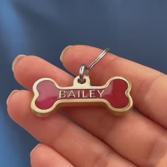 Personalised Deep Engraved with Colour Brass Bone Shaped Pet Tag